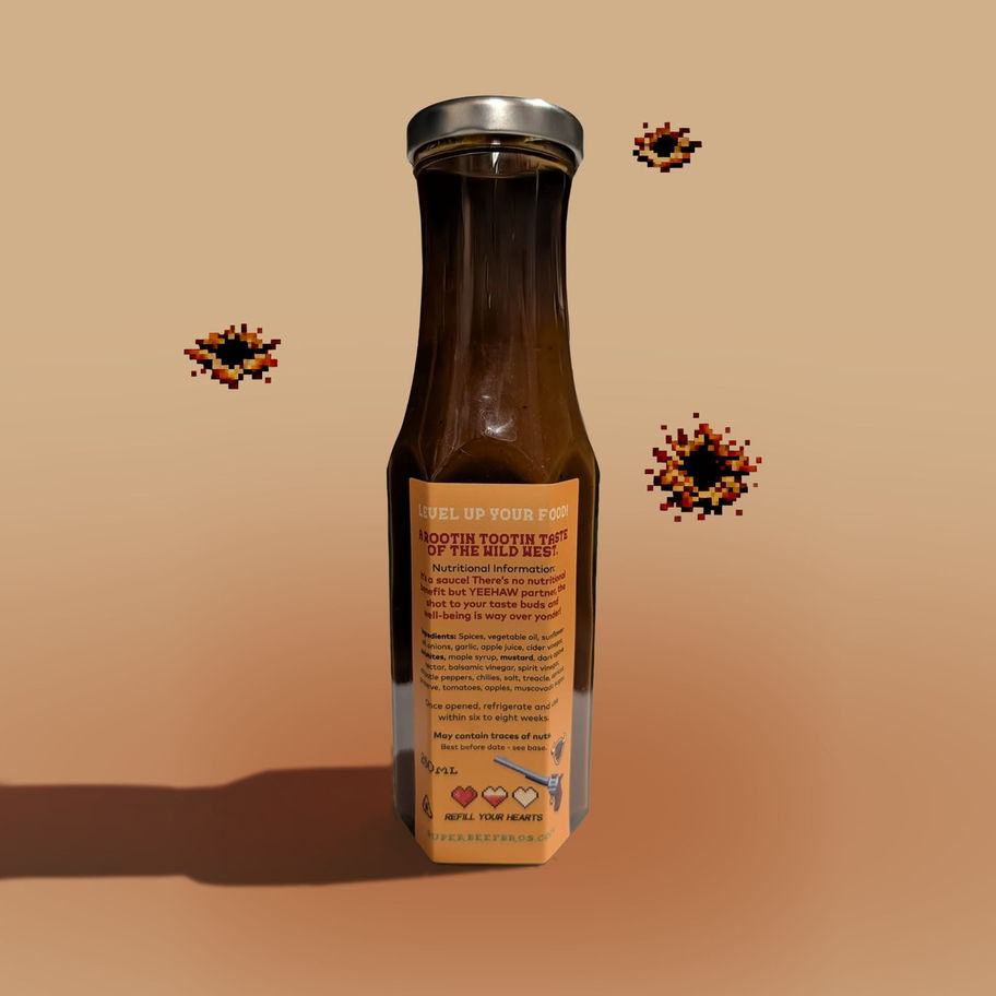 A rootin' tootin' taste of the wild west. YEEHAW partner, the shot straight to your taste buds is way over yonder! Slather this one on everything. 250ml of desert quenching thirst.